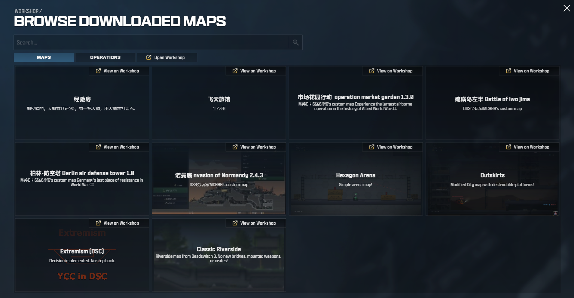 You can now browse all your subscribed Workshop items directly in-game! Use the search bar to easily filter items, and view detailed previews for each map without leaving the game.