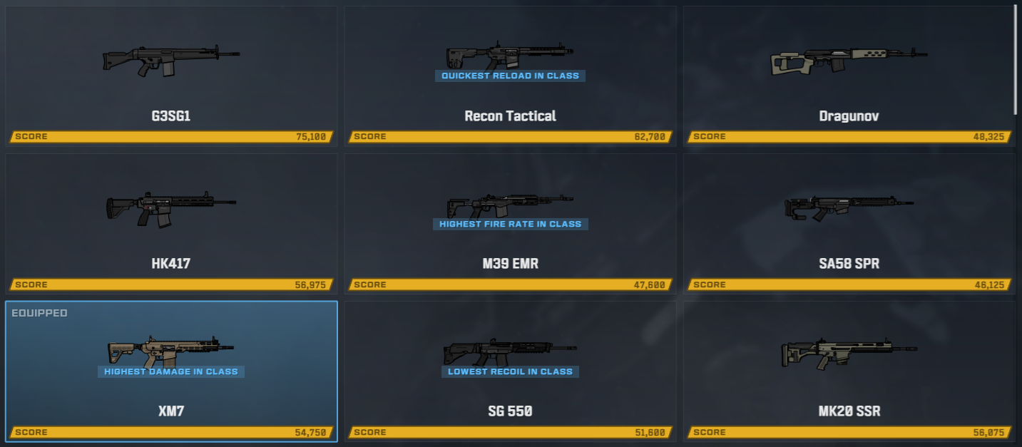 The weapon selection menu now highlights standout weapons in each class. For example, a shotgun with the highest damage of all shotguns will display Highest Damage in Class. This makes it easier to identify top performers at a glance.